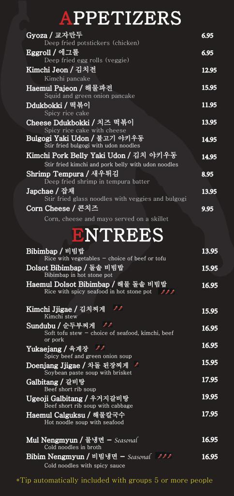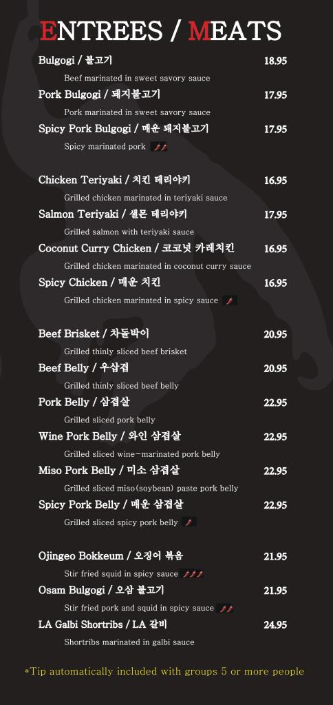 - Up to 4 meats per table and everyone has to order from the same menu.